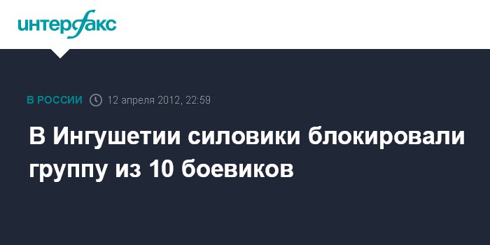 Назрань. 12 апреля. INTERFAX.RU - Группа боевиков из 10 человек блокирована сотрудниками правоохранительных органов в лесу в окрестностях Сунженского района Ингушетии, сообщил агентству "Интерфакс-Юг" источник в правоохранительных органах республики.