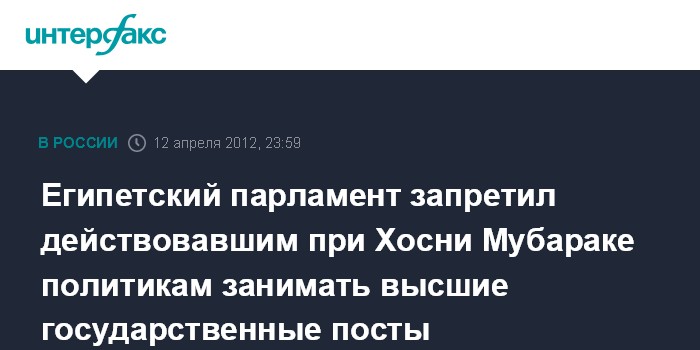 Каир. 12 апреля. INTERFAX.RU - Парламент Египта внес поправки в законопроект, запрещающий заместителям свергнутого президента Хосни Мубарака занимать высшие государственные посты, сообщают в четверг местные СМИ.