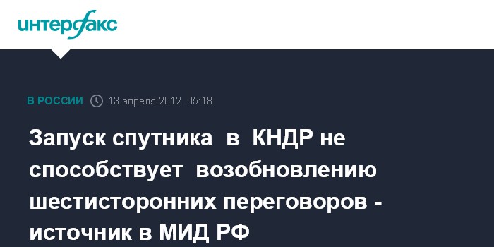 Запуск спутника в КНДР не способствует возобновлению шестисторонних переговоров - источник в МИД РФ