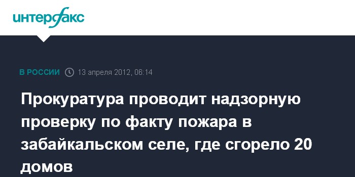 Чита. 13 апреля. ИНТЕРФАКС-СИБИРЬ - Прокуратура Забайкальского края