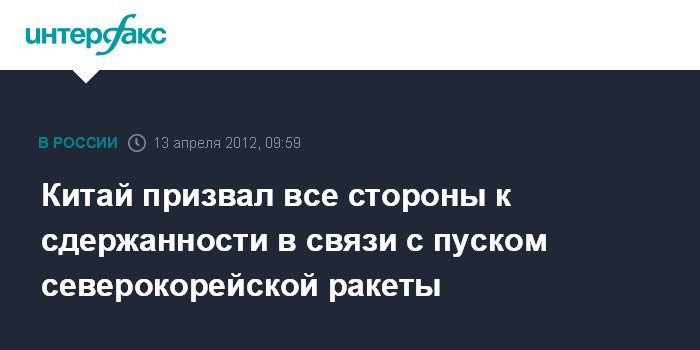 Китай призвал все стороны к сдержанности в связи с пуском северокорейской ракеты