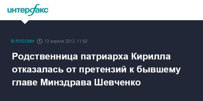 Родственница патриарха Кирилла отказалась от претензий к бывшему главе Минздрава Шевченко