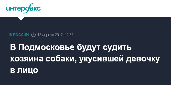 Москва. 13 апреля. INTERFAX.RU - В кратчайшие сроки завершено расследование по уголовному делу о нападении собаки, укусившей девочку в лицо в Подмосковье, сообщила "Интерфаксу" представитель ГСУ СК РФ по Московской области Ирина Гуменная.