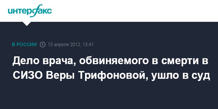 Дело врача, обвиняемого в смерти в СИЗО Веры Трифоновой, ушло в суд