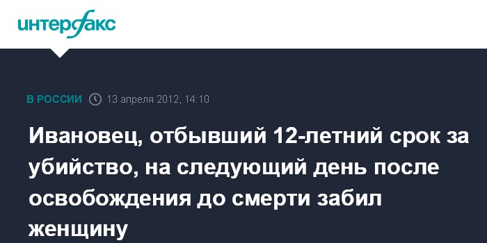 Ивановец, отбывший 12-летний срок за убийство, на следующий день после освобождения до смерти забил женщину
