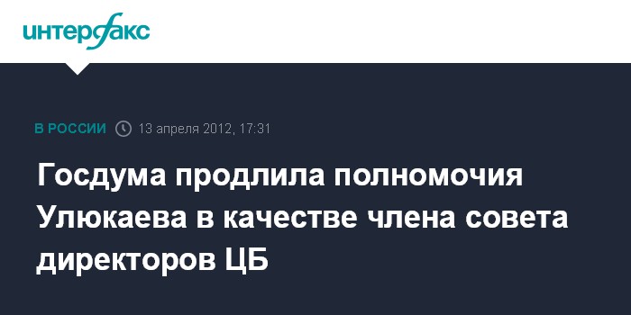 Москва. 13 апреля. INTERFAX.RU - Госдума на заседании в пятницу приняла постановление о назначении первого заместителя председателя Банка России Алексея Улюкаева членом совета директоров ЦБ РФ.