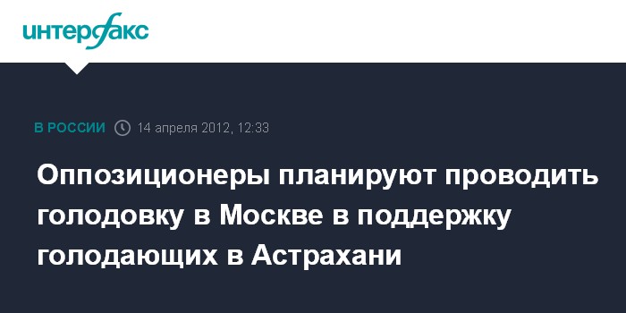 Оппозиционеры планируют проводить голодовку в Москве в поддержку голодающих в Астрахани