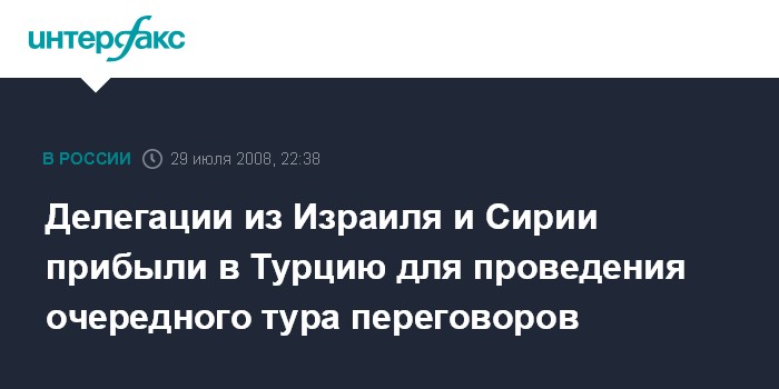Стамбул. 29 июля. ИНТЕРФАКС - Делегации из Израиля и Сирии прибыли в Турцию для проведения четвертого раунда мирных переговоров при турецком посредничестве.