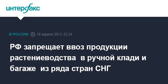 запрещает ввоз продукции растениеводства в ручной клади и багаже