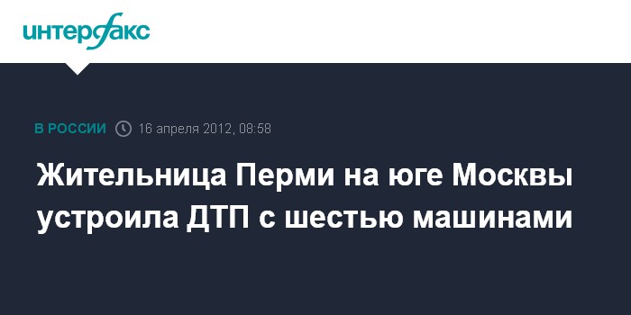 Москва. 16 апреля. INTERFAX.RU - Жительница Перми устроила аварию на юге Москвы, в которой пострадала сама, ее подруга с сыном и оказались повреждены шесть машин, сообщили "Интерфаксу" в пресс-службе ГУ МВД России по Москве.