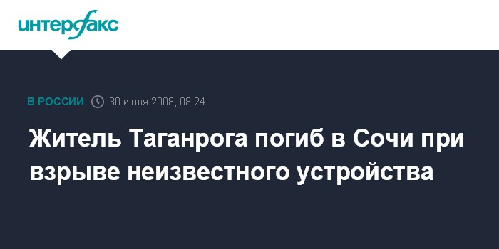 Как сообщили агентству "Интерфакс-Юг" в пресс-центре УВД Сочи, при взрыве неустановленного взрывного устройства около 2.00 мск погиб мужчина 1984 года рождения - житель Таганрога, приглашенный в Сочи в одну из строительных фирм для работы.