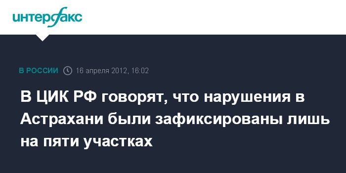 Москва. 16 апреля. INTERFAX.RU - В ЦИК РФ считают, что если нарушения на выборах мэра Астрахани и были, то не более чем на пяти избирательных участках.