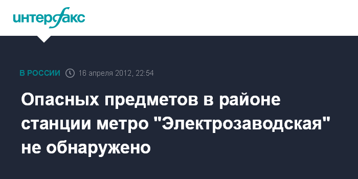 Опасных предметов в районе станции метро "Электрозаводская" не обнаружено