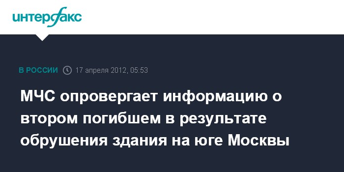 Москва. 17 апреля. ИНТЕРФАКС – В результате обрушения здания на юге столицы погиб только один человек, сообщили «Интерфаксу» во вторник в пресс-службе ГУ МЧС РФ по Москве.