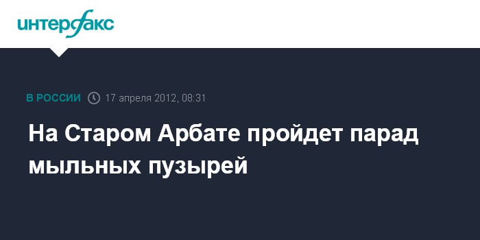 Москва. 17 апреля. INTERFAX.RU - Москвичи собираются провести ежегодный весенний парад мыльных пузырей в предстоящее воскресенье на Старом Арбате.