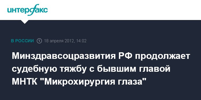 Минздравсоцразвития РФ продолжает судебную тяжбу с бывшим главой МНТК "Микрохирургия глаза"