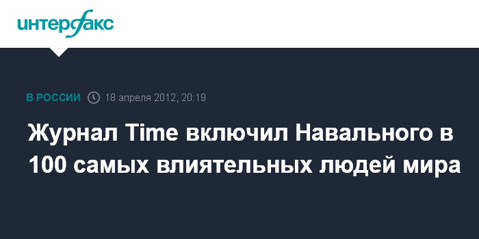 Вашингтон. 18 апреля. INTERFAX.RU - Российский блогер Алексей Навальный вошел в список 100 самых влиятельных людей мира 2012 года по версии американского журнала Time.