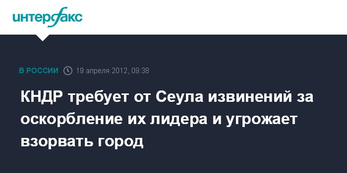 Сеул. 19 апреля. INTERFAX.RU - КНДР требует от лидера Южной Кореи принести извинения за ложные сведения о затратах Пхеньяна на столетие Ким Ир Сена, сообщают южнокорейские СМИ в четверг.
