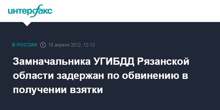 Замначальника УГИБДД Рязанской области задержан по обвинению в получении взятки