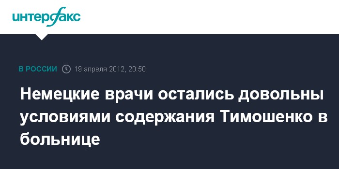 Киев. 19 апреля. INTERFAX.RU - Министерство здравоохранения Украины получило от Министерства иностранных дел официальные выводы немецких врачей клиники "Шарите" о терапевтических возможностях больницы "Укрзализныци" № 5 в Харькове по результатам визита 13 апреля 2012 года.