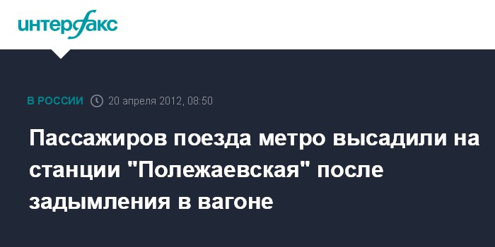 Как сообщил представитель пресс-службы, в 7.55 на станции метро "Полежаевская" было обнаружено задымление в вагоне состава, двигавшегося в сторону центра. После этого была незамедлительно проведена высадка пассажиров из поезда.