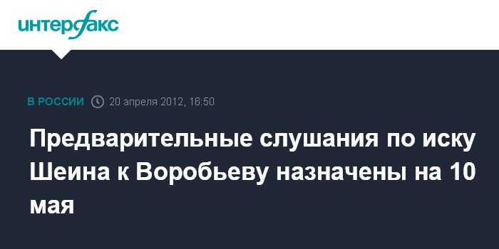 Предварительные слушания по иску Шеина к Воробьеву назначены на 10 мая