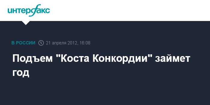 Рим. 21 апреля. INTERFAX.RU - В мае начинается операция по подъему затонувшего близ итальянского побережья круизного лайнера "Коста Конкордия", которая продлится 12 месяцев, сообщила в субботу компания-оператор судна Costa Crociere SpA. Операцию будет проводить базирующаяся в США компания Titan Salvage, которая выиграла тендер, говорится в сообщении.