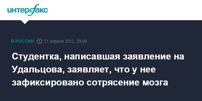 Студентка, написавшая заявление на Удальцова, заявляет, что у нее зафиксировано сотрясение мозга