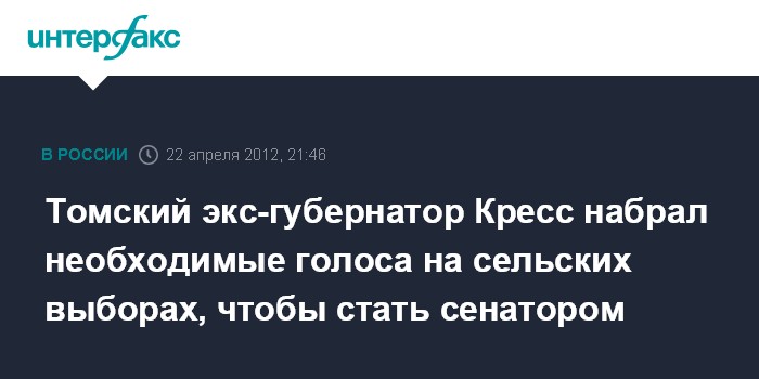 Томский экс-губернатор Кресс набрал необходимые голоса на сельских выборах, чтобы стать сенатором