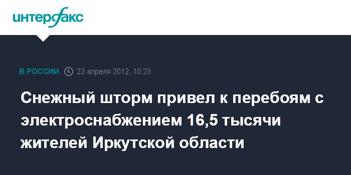 Иркутск. 23 апреля. INTERFAX.RU - Снегопад и сильный ветер привели к повреждениям на воздушных линиях электропередачи в ряде районов Иркутской области, сообщает пресс-служба ОАО "Иркутская электросетевая компания" (ИЭСК).