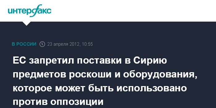 Новые санкции предусматривают запрет на поставки в Дамаск предметов роскоши, а также дополнительные ограничения на поставку оборудования, которое может быть использовано в ходе операций против оппозиции.