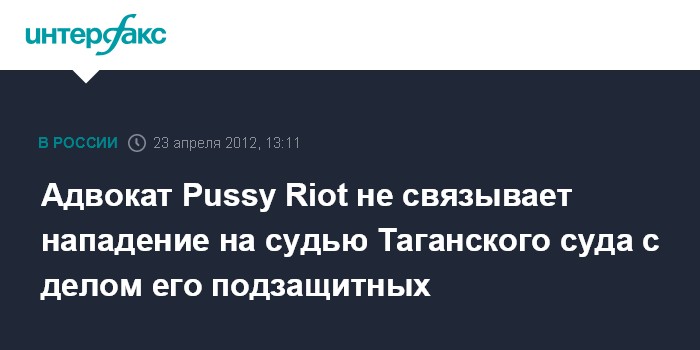 Москва. 23 апреля. INTERFAX.RU - Адвокату участниц панк-группы Pussy Riot удивлен сообщениями о нападении на судью Таганского суда, которая рассматривает дело в отношении его подзащитных.