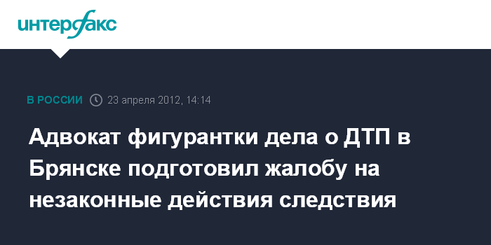 Москва. 23 апреля. INTERFAX.RU - Защита жительницы Брянска Ирины Добржанской, осужденной на четыре года колонии за резонансное ДТП со смертельным исходом, намерена жаловаться на незаконные, по ее мнению, действия следствия.
