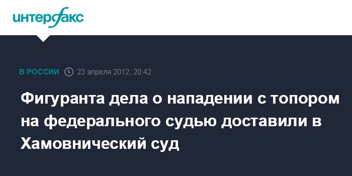 Москва. 23 апреля. INTERFAX>RU - Следствие ходатайствует об аресте москвича Андрея Бородина, напавшего на федерального судью Елену Иванову с топором и требовавшего освобождения из-под стражи участниц группы Pussy Riot.