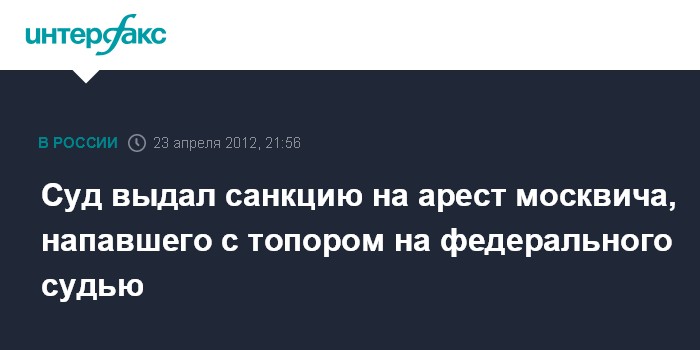 Суд выдал санкцию на арест москвича, напавшего с топором на федерального судью
