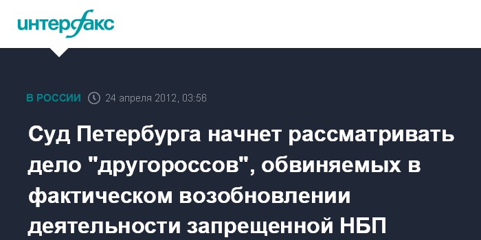 Суд Петербурга начнет рассматривать дело "другороссов", обвиняемых в фактическом возобновлении деятельности запрещенной НБП