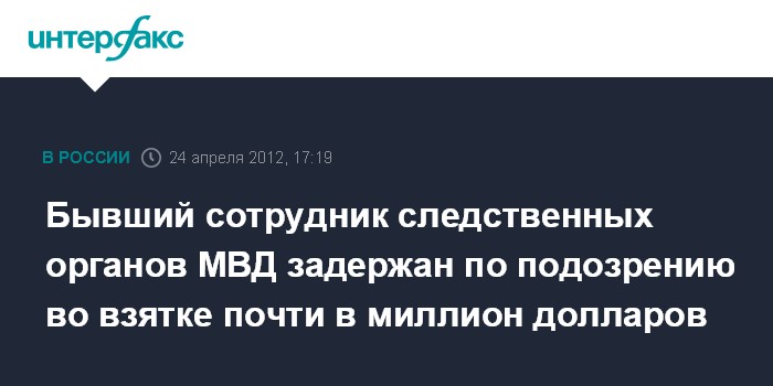 Бывший сотрудник следственных органов МВД задержан по подозрению во взятке почти в миллион долларов