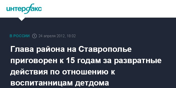 Глава района на Ставрополье приговорен к 15 годам за развратные действия по отношению к воспитанницам детдома