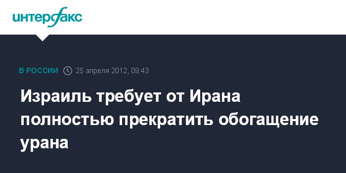 Вашингтон. 25 апреля. INTERFAX.RU - Премьер министр Израиля Биньямин Нетаньяху потребовал, чтобы Иран полностью закрыл все программы по обогащению урана.