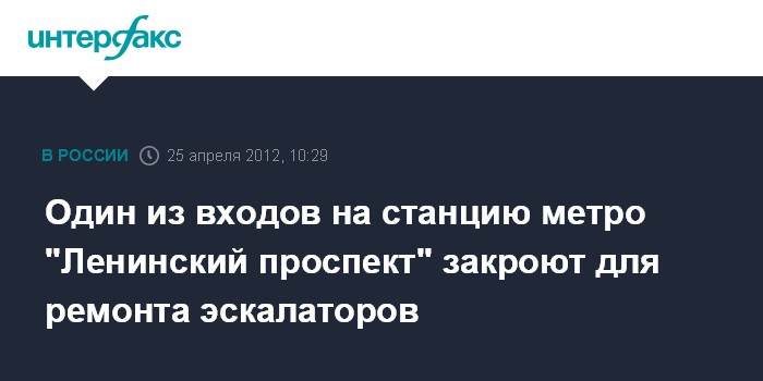 Москва. 25 апреля. INTERFAX.RU - Северный вестибюль станции метро "Ленинский проспект" закроют на два дня в связи с ремонтом эскалаторов, сообщили в пресс-службе Московского Метрополитена.