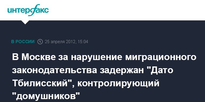 В Москве за нарушение миграционного законодательства задержан "Дато Тбилисский", контролирующий "домушников"