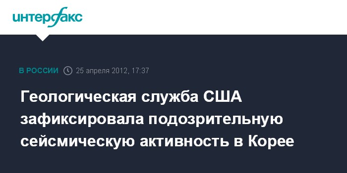 Вашингтон/Сеул. 25 апреля. INTERFAX.RU - Геологическая служба США в среду зафиксировала подозрительную кратковременную сейсмическую активность на Корейском полуострове.