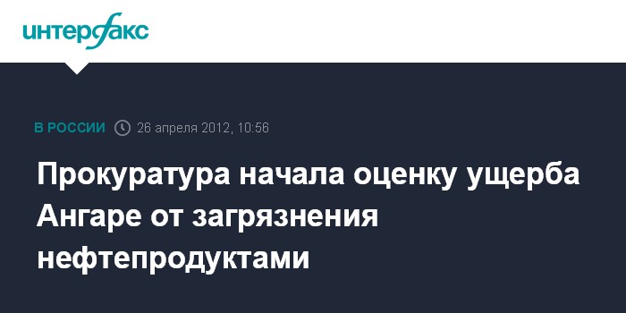 Иркутск. 26 апреля. INTERFAX.RU - Западно-Байкальская природоохранная прокуратура приступила к установлению степени загрязнения реки Ангары нефтепродуктами из-за незаконной врезки в локальный нефтепровод на ФГУ "Комбинат Росрезерва "Прибайкалье" в Усолье-Сибирском, сообщает пресс-служба прокуратуры Иркутской области.