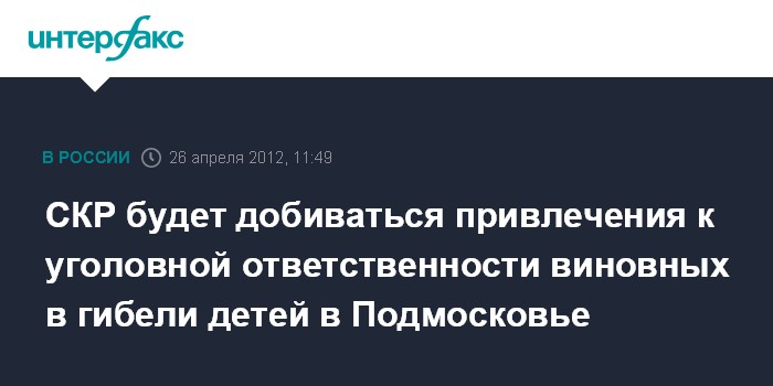 СКР будет добиваться привлечения к уголовной ответственности виновных в гибели детей в Подмосковье