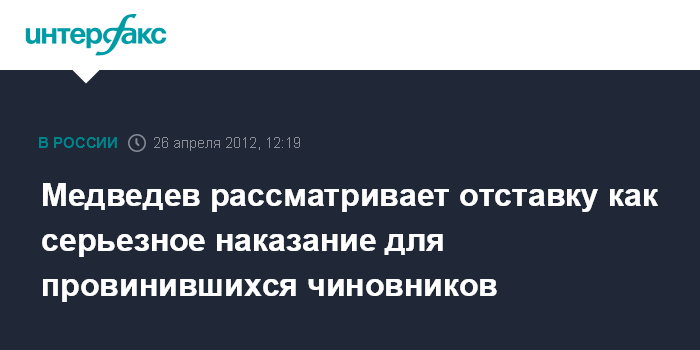 Медведев рассматривает отставку как серьезное наказание для провинившихся чиновников