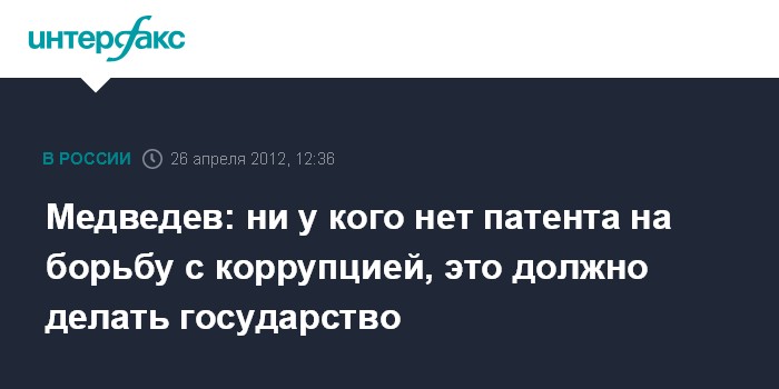 Медведев: ни у кого нет патента на борьбу с коррупцией, это должно делать государство