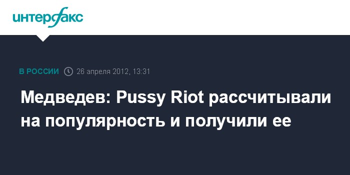 Москва. 26 апреля. INTERFAX.RU - Президент РФ Дмитрий Медведев воздержался от комментариев в связи с делом Pussy Riot, устроивших "панк-молебен" в храме Христа Спасителя, отметив лишь, что они, видимо, добились поставленной цели - "популярности".