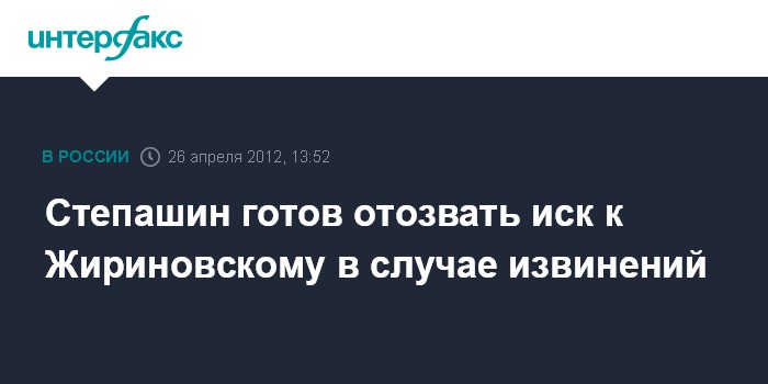 Санкт-Петербург. 26 апреля. INTERFAX.RU - Председатель Счетной палаты РФ Сергей Степашин обещает отозвать свой иск о защите чести и достоинства к лидеру ЛДПР Владимиру Жириновскому, если тот извинится.