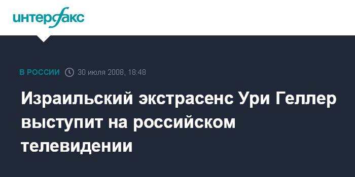 Москва. 30 июля. INTERFAX.RU - Телеканал "Россия" в новом телесезоне представит шоу "Феномен" с участием израильского парапсихолога Ури Геллера, знаменитого большим количеством разнообразных трюков, включая остановку часов Биг Бэн в Лондоне.