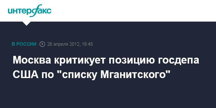 Москва критикует позицию госдепа США по "списку Мганитского"